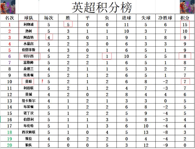 英超最新积分战报利物浦继续和皇马同节奏曼联击败切尔西升第10