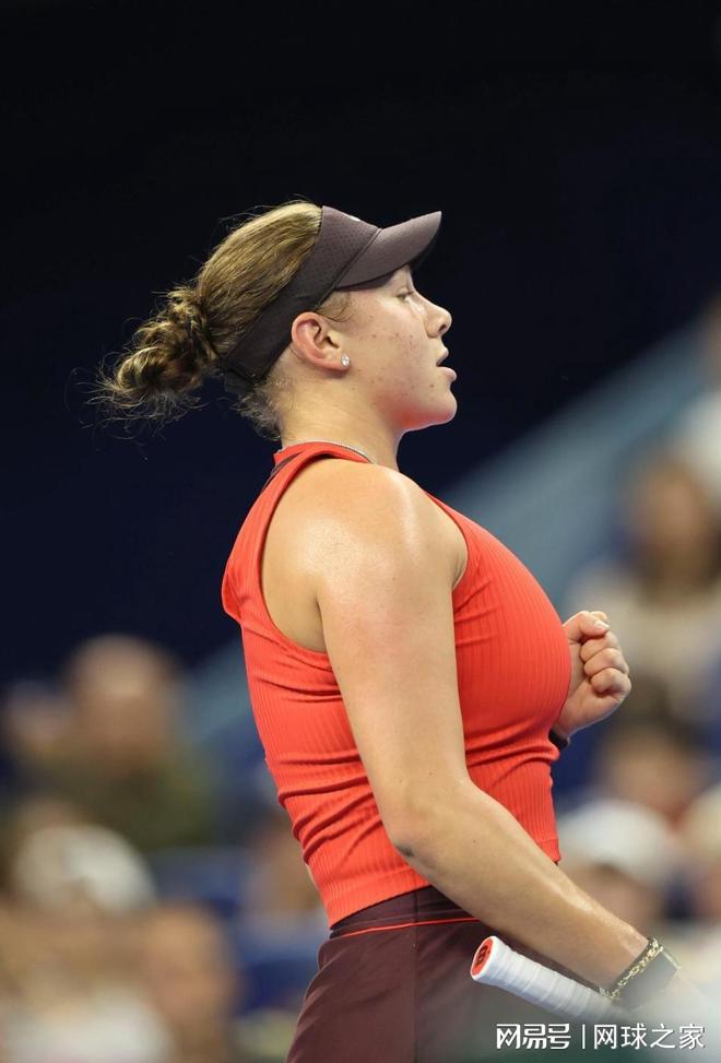 获胜的那一刻,阿尼西莫娃也是相当兴奋,立即倒在了地上,像拿到大满贯冠军似的。