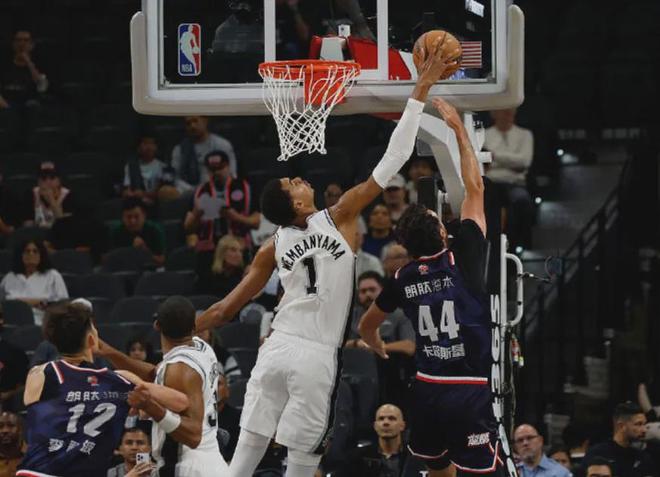 马刺今年首场季前赛对阵的是来自CBA联赛的广州龙狮男篮,当时文班亚马牛刀小试,拿到9分10篮板7助攻3封盖就下场休息了。