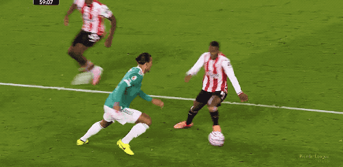 先来看几个丢球。开场仅仅5分钟,布伦特福德就用了一个非常流行的边线球手榴弹战术的,前点阿耶尔自主头球摆渡之后,后点瓦塔拉侧钩破门。就此,布伦特福德取下了领先的优势。紧接着在上半场下半时衔接点上,布伦特福德又完成了一头一尾的“致敬”,通过一次快速反击中场出球之后,沙德拿到了一次机会,形成了单刀。面对利物浦将轻松推射破门,就此2:0。