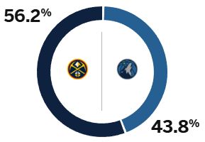 - NBA | ESPN预测明日掘狼胜率:掘金56.2%,森林狼43.8%