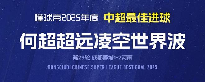 而最终的评选结果也已经出炉,综合各位球迷朋友们的投票结果,河南中场何超在中超第29轮对阵成都蓉城的比赛中上演的超远凌空斩世界波绝杀以31.5%的得票率当选2025赛季懂球帝中超最佳进球。