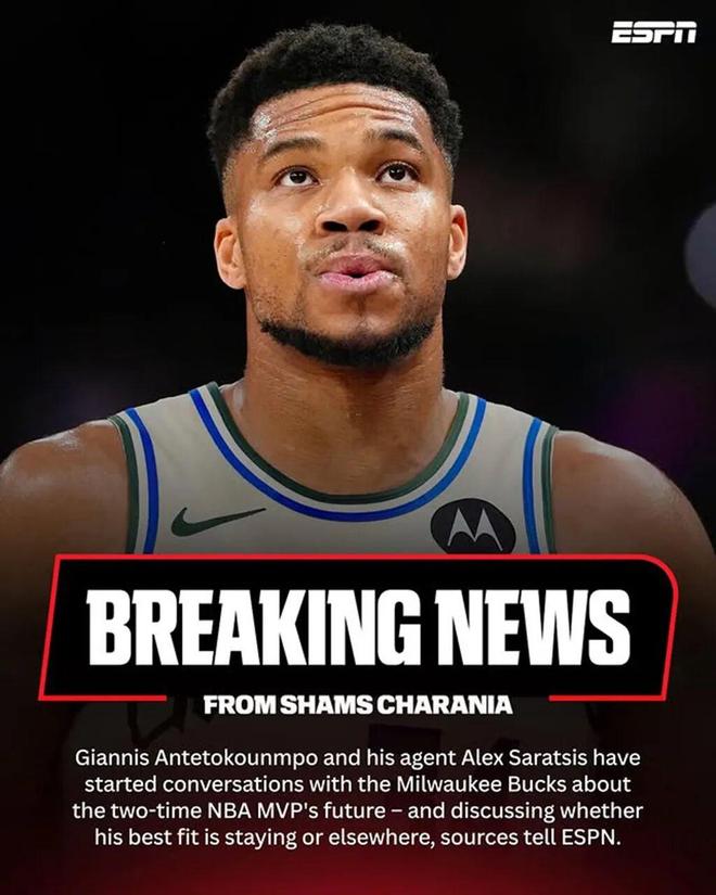 另一边,字母哥被曝决定离开雄鹿队,目前正在积极寻找下家。