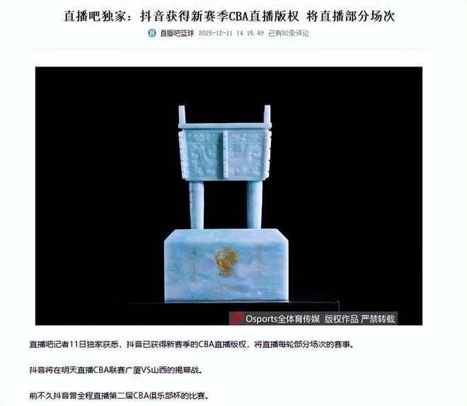 - CBA | CBA官宣:抖音成官方内容平台每日免费直播精选场次+非全场次