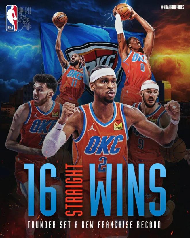 我们还记得,当16勇士开局24连胜时有多疯狂,当时觉得,可能再也看不到如此炸裂的开局了,如今这才10年过去,雷霆就追平了16勇士的纪录。