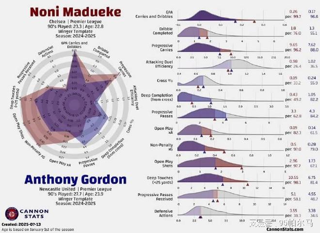 比如算上埃因霍温时期,马杜埃凯累计对阿森纳打进了6球,上赛季更是充分展示了左右脚均衡的射门能力(65.8%左脚,34.2%右脚),稍微意外的是,作为推进类型的边锋,马杜埃凯每90分钟内尝试射门高达3.5次,并且集中在禁区内。