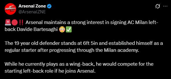 据意大利《米兰体育报》报道,阿森纳在一月转会窗开启前已对AC米兰后卫巴尔泰萨吉产生了浓厚兴趣。枪手希望这个冬天把这位边后卫带到英格兰。对枪手而言,这是一笔面向未来的精明投资,可在未来数年逐步培养。巴尔泰萨吉主打左后卫,喜欢上下翻飞,必要时参与进攻,将与卡拉菲奥里、刘易斯-斯凯利等人竞争主力位置。