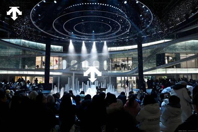 12月16日,迪桑特位于华贸中心广场的“未来之城”全球旗舰店正式揭幕,并且举办了“问顶未来”主题大秀。门店造型与大秀展示都相当有科技感和未来感,让人沉浸于对未来的向往和探索氛围中。