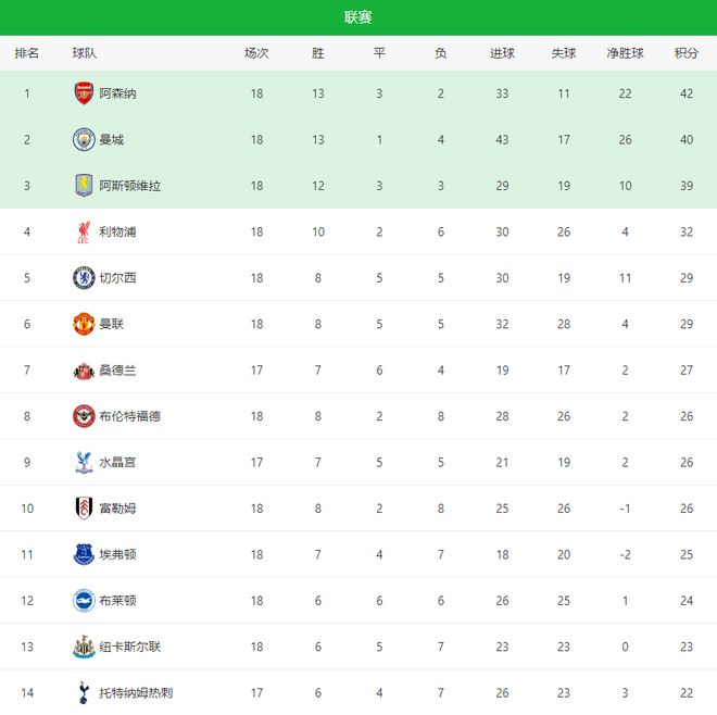 - 英超 | 英超最新积分战报争冠激烈!曼城阿森纳维拉齐赢球利物浦回前4