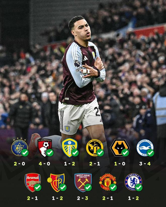 埃梅里豪取11连胜!维拉21切尔西,替补21分钟双响,差阿森纳3分