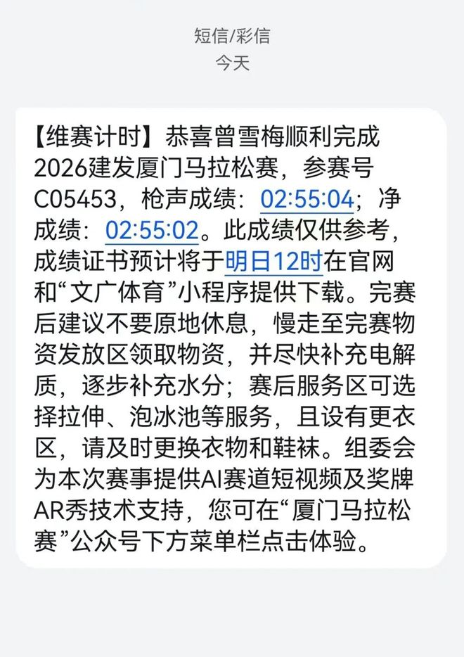 2026年厦门马拉松,曾雪梅就站在C区的人堆里,一周前,她刚刚跑完容桂马拉松,这对她来说是一场背靠背的比赛。对目标破三的跑者来说,C区不算一个理想的出发位,要想跑出速度,必须在人缝中穿梭,这需要消耗极大的体力和精力。