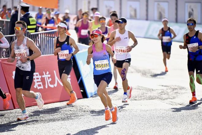 更大的考验在后半程。海风逆着吹,像一堵无形的墙,狠狠地拍在脸上。曾雪梅很瘦,体重轻,被风吹得有些踉跄,感觉要被吹回头了。到了35公里,她的配速掉了一些,从稳定的节奏掉到了4分15秒。