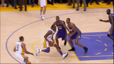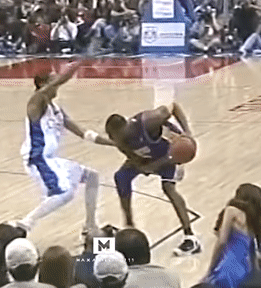 他的右手突破急停跳投和左手突破急停跳投,动作甚至全然不同 ——左手突破急停跳投比较顺势,收球即可;右手突破急停跳投时,他通常会从双脚平行起跳,空中扭转到右肩靠前(还经常要踢右腿保持平衡)。在进攻端,几乎没有他做不出来的动作。到最后,遇到不同防守,他的身体便像条件反射般转换到进攻状态,其速度之快甚至不需要调整。无论是背身单打、面筐切入、无球跑动后接球绕掩护寻求攻击,他都有无数花招可以展示。他的射程远达半场的任何地点,体能支撑每场30次甚至40次的投篮。