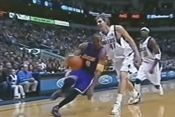 2000年夏天,科比练成了高起跳、高出手点、略带后仰的滞空中投,专门用来应付对方的高强度防守。2006年,他不停地在两三个人头顶出手。