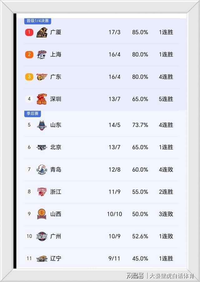 - CBA | CBA最新积分榜:广东4连胜升第1,北京1分险胜,山西3连败排第8