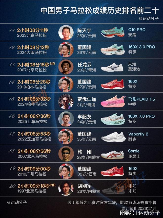 - 体育战报 | 盘点中国男子马拉松历史前20快成绩,现役7人创造17个
